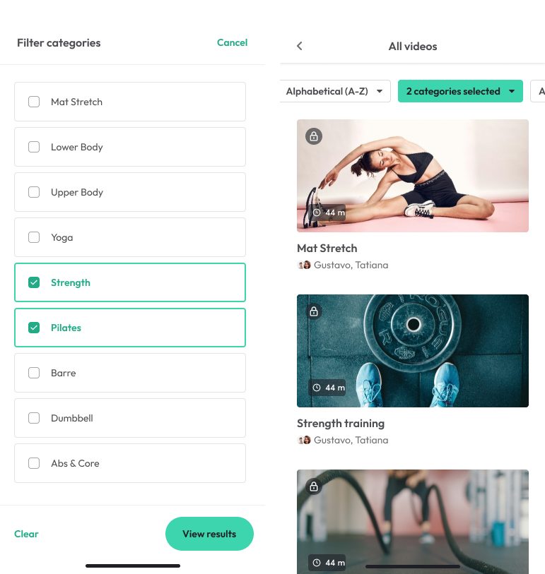 To make all this awesome content easy for members to find, you’ll first want to set up content categories and sub-categories on the app. For example, you might have a Workouts category that contains sub-categories like Cardio, Strength, Flexibility, and so on. Or a Recipes category that contains sub-categories like Healthy snacks, Salads, and Smoothies.