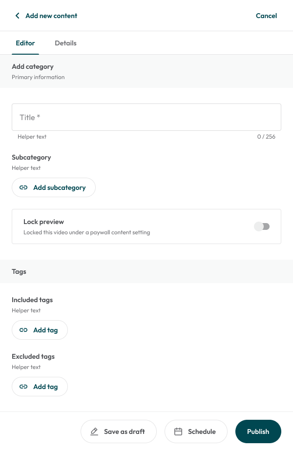 - Complete other form fields as required (e.g. livestream settings, duration, instructor, intensity, focus, equipment, and written content)